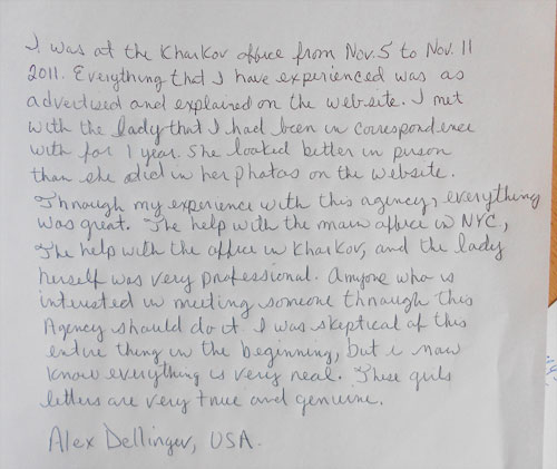 Dear Gentlemen, here we are happy to represent you the Testimonials of the customers who have found their soulmates with the help of the Marriage Making Agency. Here they express their opinion, experience and suggestions for those who are looking for a second half in another country and appreciation to the company and the staff.