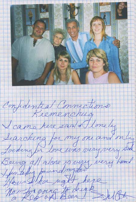 So the song goes but is very true. Your ladies at confidential connections are breathtaking. But I had one lady in mind when I made a trip to Kharkov in January 2005. A beautiful woman, Elena C. wrote me first in October of last year saying I would not regret writing back and we have been writing each other every day since. My initial meeting with Elena only confirmed what we suspected, that we had like minds and had found true love in each other. Very honest, loving, attentive and very relationship oriented. We felt like the world was spinning around us. My week trip to Kharkov was worth everything to me.